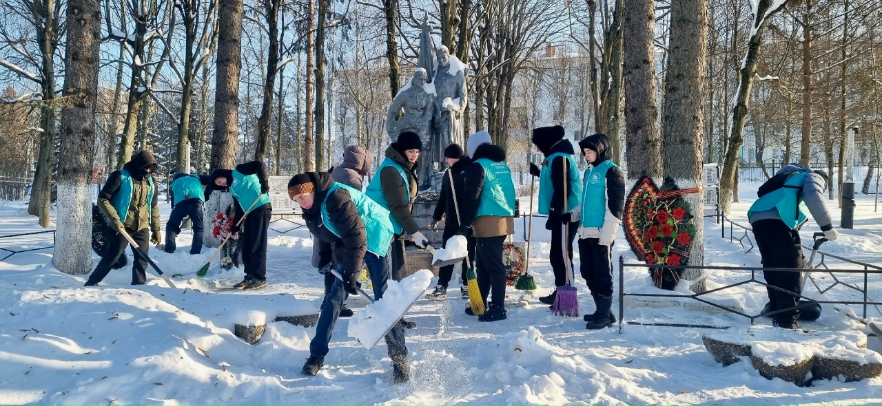 В Черни волонтеры убрали снег на братской могиле