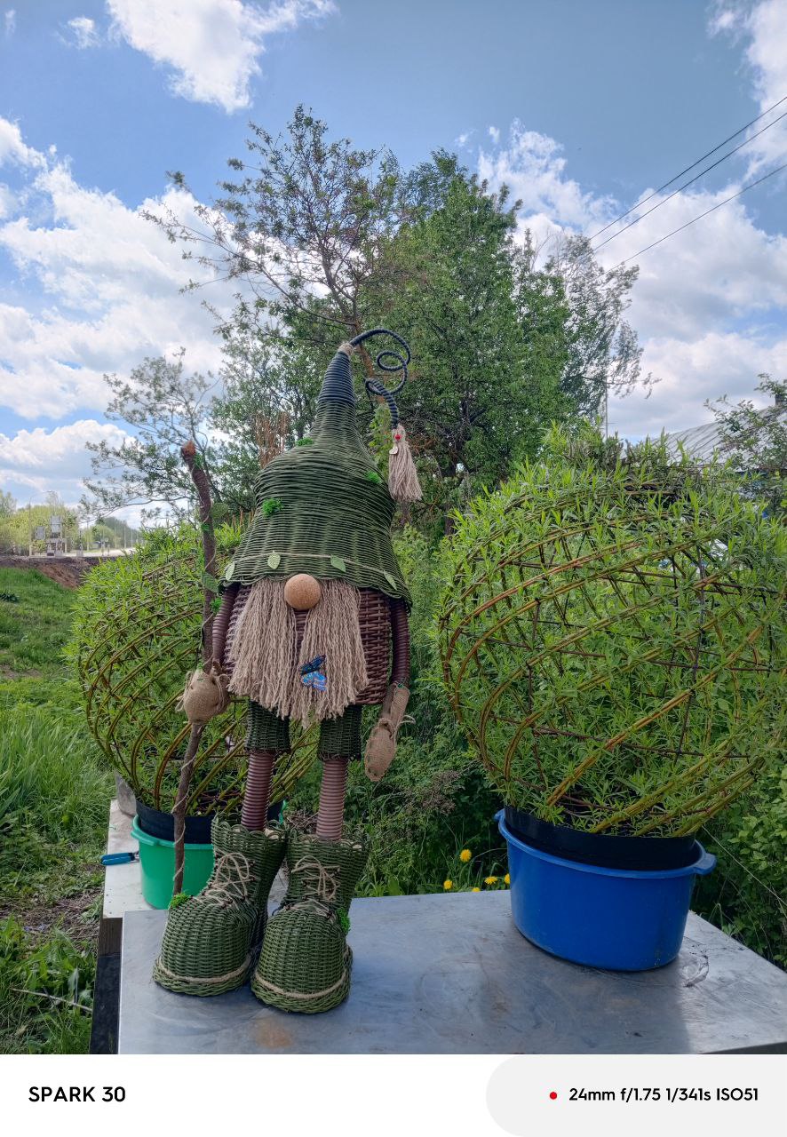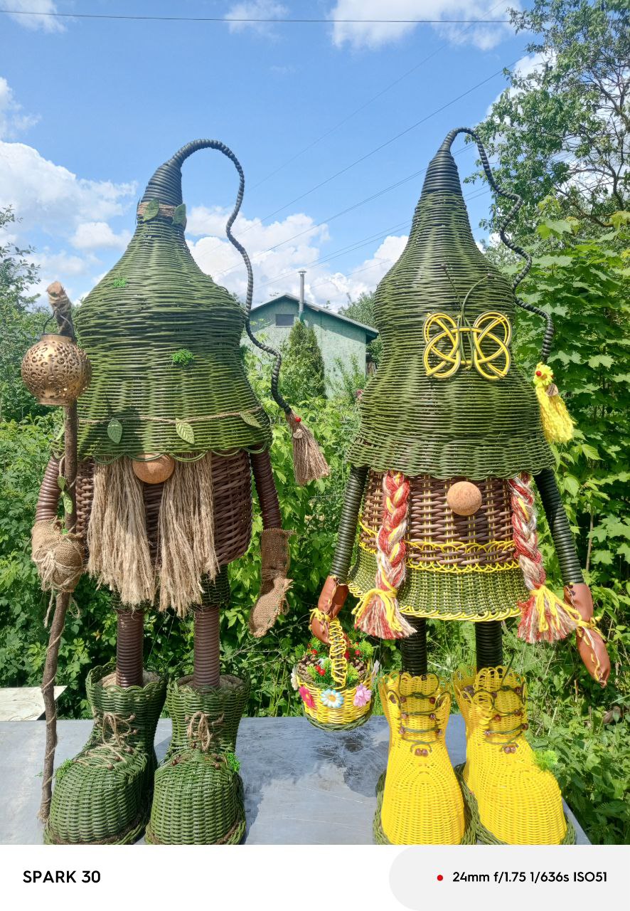 Оксана Александровна уверена, что ее работы придадут очарование и сказочную атмосферу любому месту. И действительно, её плетённые деревья словно оживают благодаря искусному переплетению тонких ивовых ветвей, создавая иллюзию чего-то космического, неземного. А очаровательные гномики из ротанга будто сошли со страниц детских книг. Они вызывают улыбку и восторг.